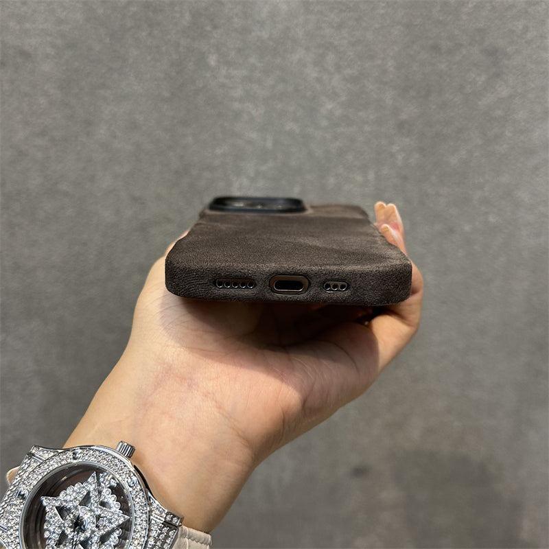 Entdecken Sie die perfekte Kombination aus Eleganz und Schutz mit unserer handgefertigten Wildleder-Handyhülle. Jede Hülle wurde sorgfältig aus hochwertigem Wildleder gefertigt und ist einzigartig in ihrer Textur und Optik. Mit präzisen Nähten und einer exquisiten Verarbeitung bietet diese Hülle einen erstklassigen Schutz für Ihr Smartphone vor Kratzern und Stößen. Das weiche Wildleder schmiegt sich sanft an Ihr Gerät an und verleiht ihm eine luxuriöse Note. Dank des schlanken Designs bleibt die Hülle angenehm griffig und ermöglicht einen bequemen Zugriff auf alle Funktionen. Verleihen Sie Ihrem Handy mit unserer handgefertigten Wildleder-Handyhülle einen Hauch von Stil und Qualität. Bestellen Sie jetzt und schützen Sie Ihr Telefon in eleganter Weise.